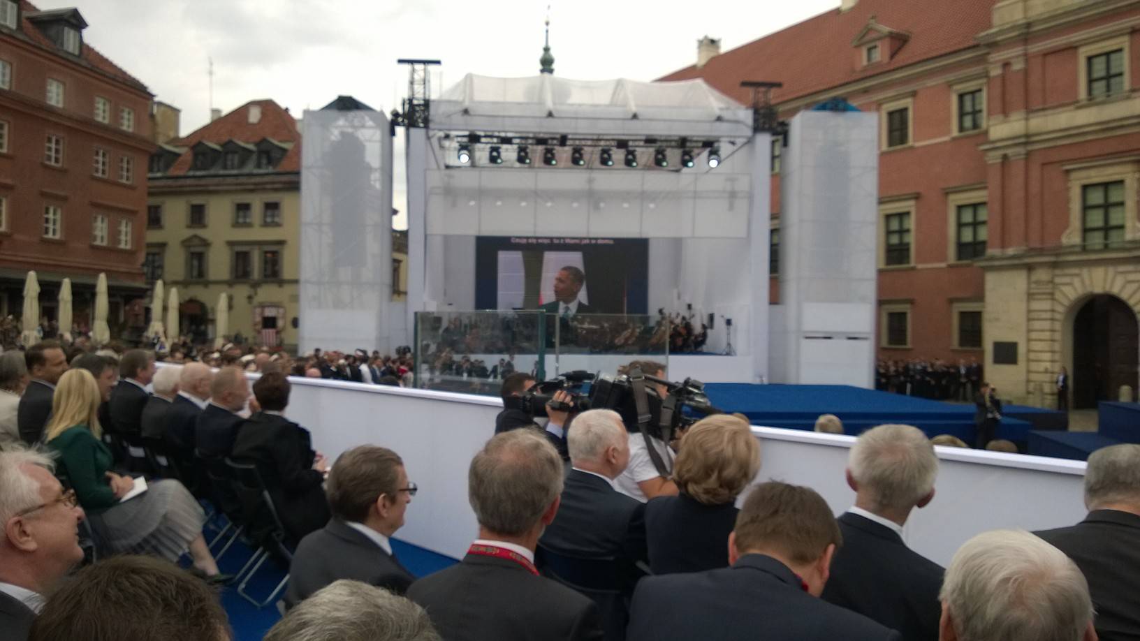 In zijn toespraak onderstreepte President Obama de buitengewone betekenis van het historisch jaar 1989 en het vervolg daarop. "We have seen the extraordinary progress since that time. A united Germany. Nations in Central and Eastern Europe standing tall as proud democracies. A Europe that is more integrated, more prosperous and more secure. We must never forget that the spark for so much of this revolutionary change, this blossoming of hope, was lit by you, the people of Poland." Hij noemde ook de historische rol van de Poolse Paus Johannes Paulus II. Daarnaast ging de President uitvoerig in op de actuele ontwikkelingen in Oekraïne. Hij herbevestigde de verantwoordelijkheid van de NAVO voor de veiligheid van Polen en de overige NAVO-landen in Oost-Europa. Hij sprak steun uit aan het hervormingsproces in Oekräine. "The Ukrainians of today are the heirs of Solidarity -- men and women like you who dared to challenge a bankrupt regime. " Obama dankte Polen voor de moed op te komen tegen onderdrukking. "Thank you, Poland -- for your triumph -- not of arms, but of the human spirit, the truth that carries us forward. There is no change without risk, and no progress without sacrifice, and no freedom without solidarity."