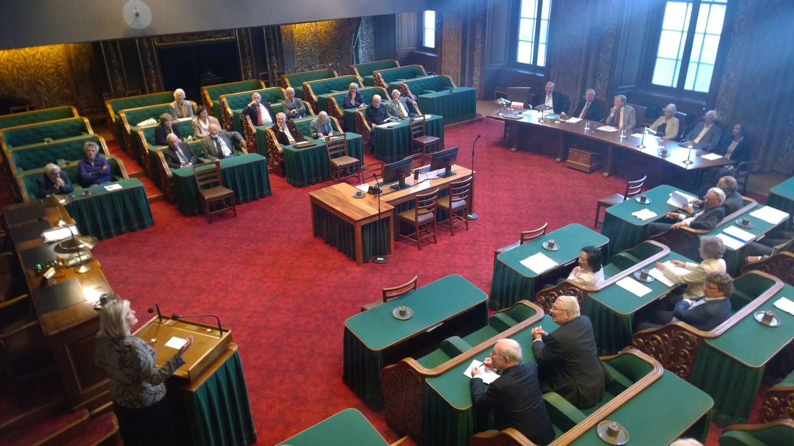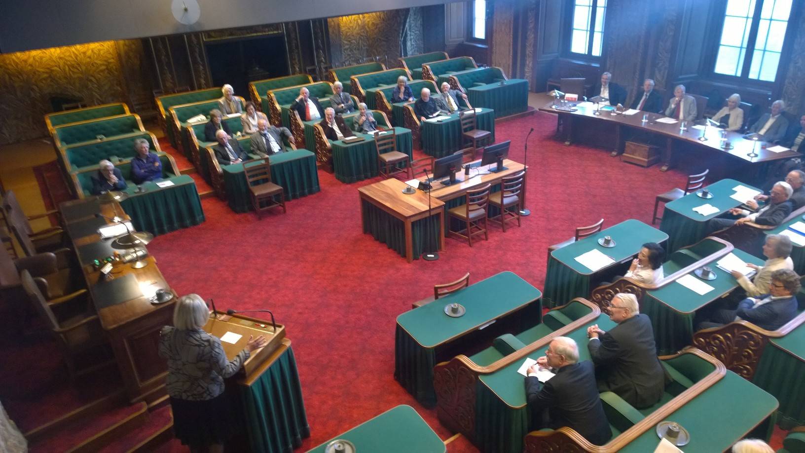 Op de tweede donderdag na Prinsjesdag vergaderde volgens traditie in de plenaire zaal van de Eerste Kamer het Genootschap van Oud-Senatoren, de vereniging van voormalige leden van de Eerste Kamer der Staten-Generaal. Het centrale thema op de jaarbijeenkomst was ‘200 Jaar Staten-Generaal, parlementarisme toen en nu’. Het thema werd ingeleid door prof. dr. Henk te Velde, hoogleraar Vaderlandse Geschiedenis aan de Universiteit van Leiden. Te Velde is ook lid van het Nationaal Comité 200 jaar Koninkrijk. Hij schetste het ontstaan van de Staten-Generaal in 1814 waarbij werd teruggegrepen op de Staten-Generaal als meer bestuurlijk college zoals de Republiek der Verenigde Nederlanden die heeft gekend en anderzijds sprake was van democratische invloeden die voortkwamen uit de tijd van de Bataafse Republiek.