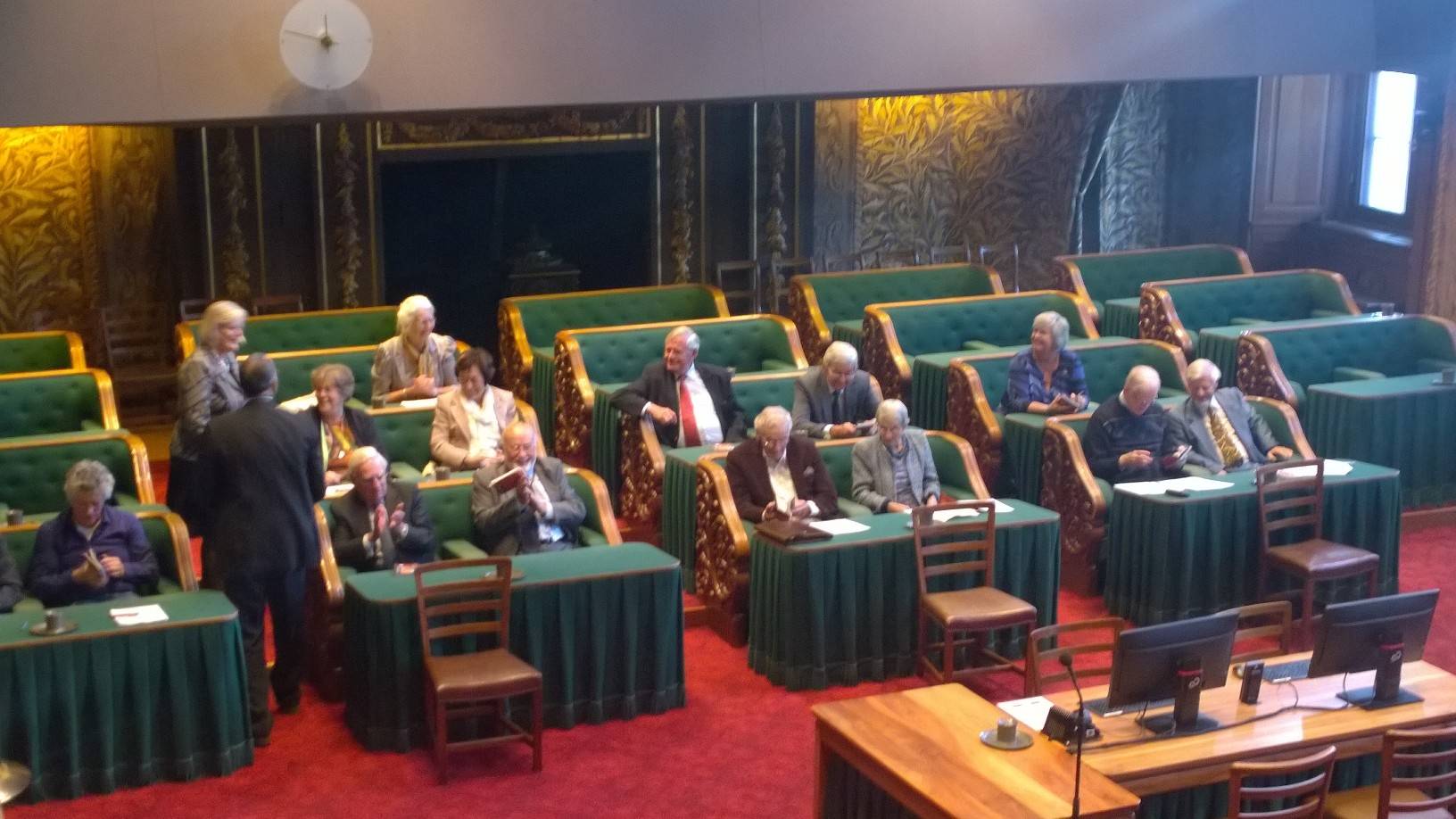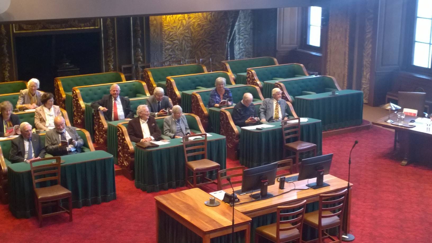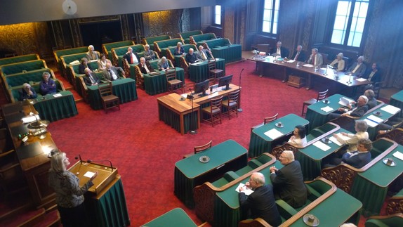 De Oud-Senatoren werden ook toegesproken door de Voorzitter van de Eerste Kamer, Ankie Broekers-Knol, die actuele ontwikkelingen in de Eerste Kamer schetste. Tijdens de jaarvergadering ging het voorzitterschap van het Genootschap over van Andries Postma op John van Graafeiland. Postma heeft de functie sinds 2010 vervuld; hij was bestuurslid sinds 2002. Van Graafeiland was tot nu toe secretaris van het Genootschap. Onder de aanwezigen bevond zich de oudste Oud-Senator, Johan van Hulst, 103 jaar oud, die lid van de Eerste Kamer was van 3 juli 1956 tot 10 juni 1981.