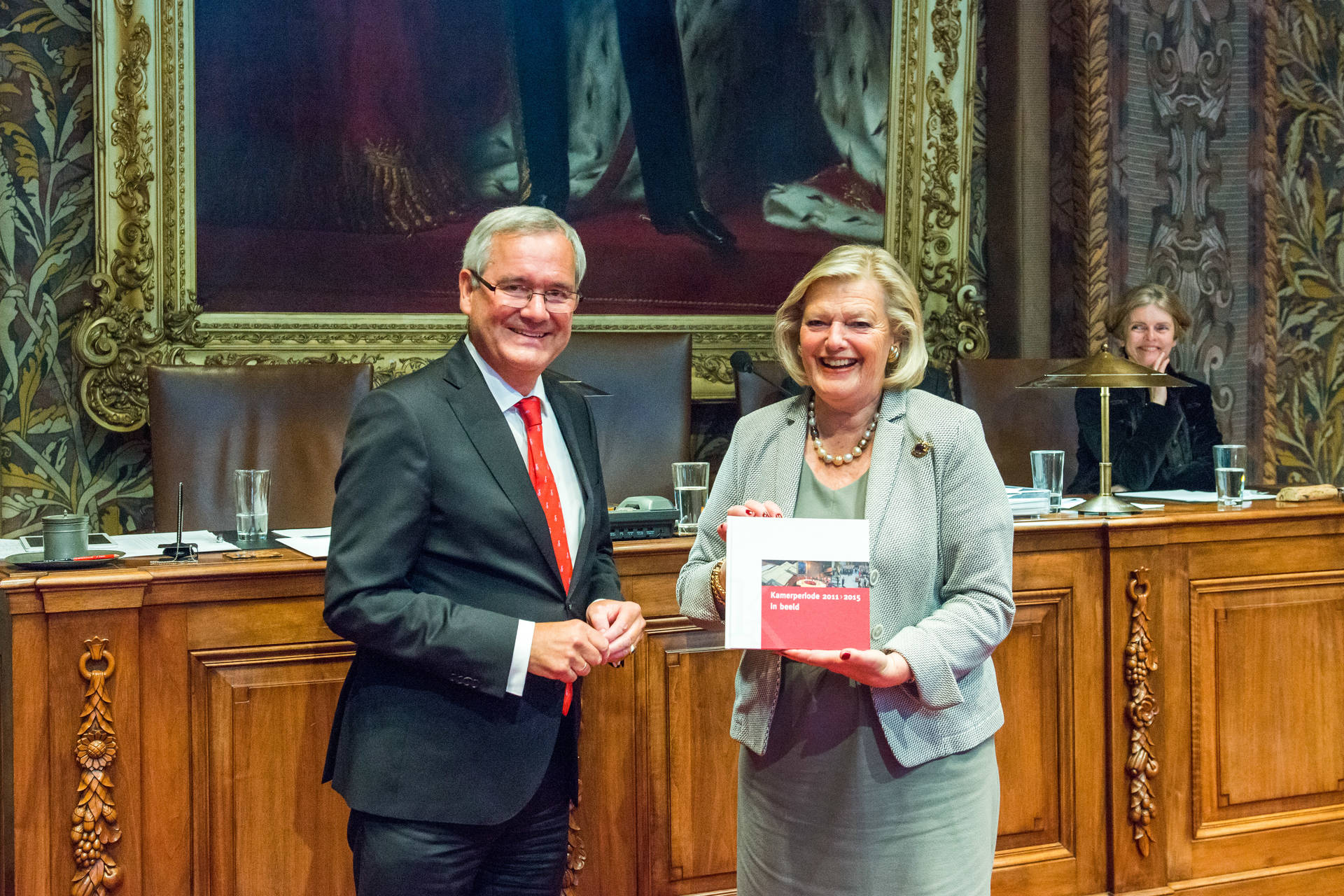 Tien Eerste Kamerleden ontvingen bij hun afscheid uit handen van de Eerste Kamervoorzitter een Koninklijke onderscheiding. Zij zijn meer dan tien jaar lid geweest van de Staten-Generaal.