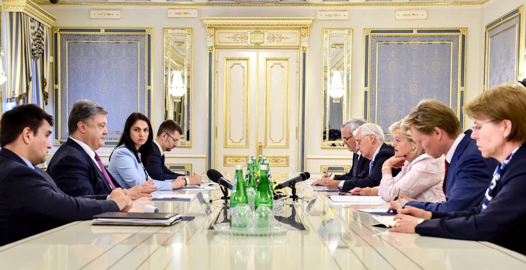 De Voorzitter van de Eerste Kamer, Ankie Broekers-Knol, is tijdens haar officiële bezoek aan Oekraïne met haar delegatie in het presidentieel paleis ontvangen door de President van Oekraïne, Petro Poroshenko. Bij de ontmoeting was ook de Oekraïense minister van Buitenlandse Zaken Pavlo Klimkin aanwezig.