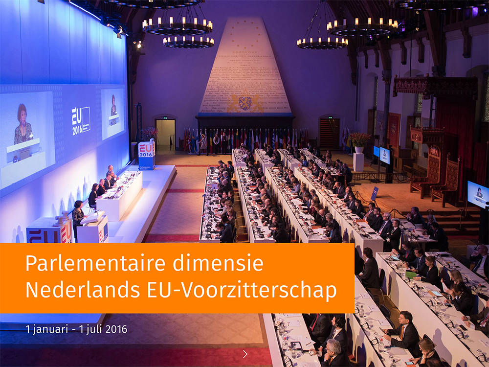 De Eerste en Tweede Kamer hebben dinsdag 27 september een e-zine uitgebracht met een terugblik van de parlementaire dimensie van het Nederlands EU-voorzitterschap. Nederland was in de eerste helft van 2016 voorzitter. Het Nederlandse parlement organiseerde in dat kader onder meer zes interparlementaire conferenties voor parlementariërs van de 28 EU-Lidstaten, deels in samenwerking met het Europees Parlement. Een innovatieve aanpak stond centraal in de organisatie van de parlementaire dimensie van het voorzitterschap.