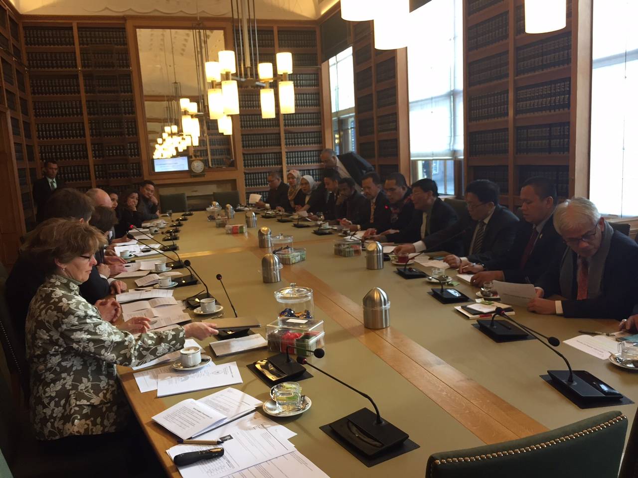Op dinsdag 21 maart bracht een Indonesische delegatie onder leiding van Vicevoorzitter Farouk Muhammad van de Dewan Perwakilan Daerah Republik Indonesia (DPD RI), de Indonesische senaat, een bezoek aan de Eerste Kamer. De delegatie bestaande uit acht senatoren en drie stafleden is een kleine week in Nederland voor een werkbezoek. Doel van het gesprek in de Eerste Kamer was meer te leren over de Nederlandse begrotingssystematiek alsook de financiering van de Eerste Kamer.