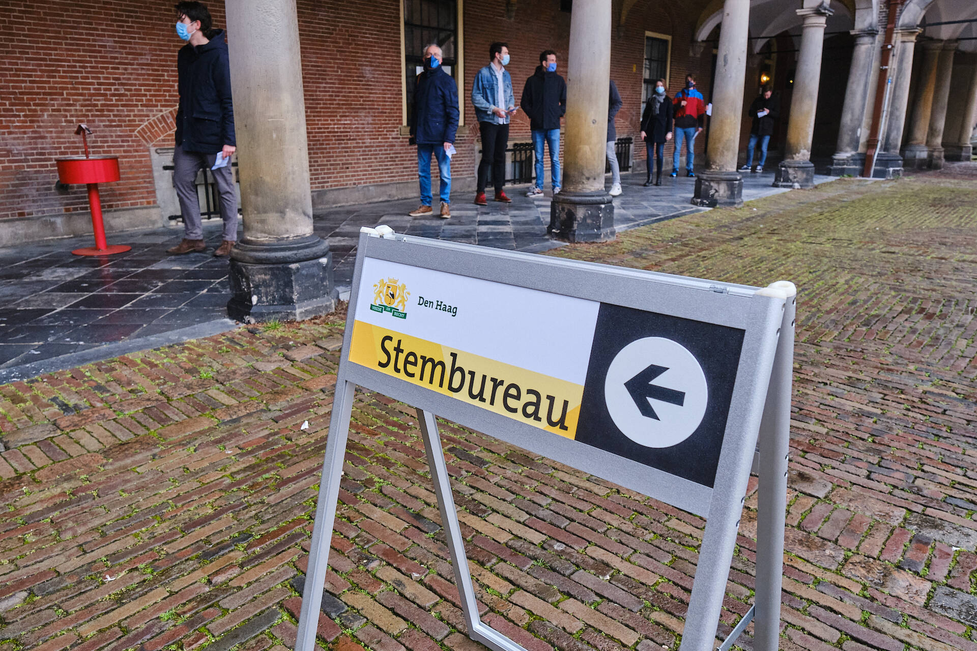 Ondanks de grote aanloop hield men zich aan de coronamaatregelen. In de rij op het Binnenhof bleef iedereen netjes op anderhalve meter afstand, en droegen de wachtenden mondkapjes. De vaste looproute was in het gebouw met stickers aangegeven en dankzij de speciale spatschermen konden stembureauleden hun werk veilig uitvoeren.