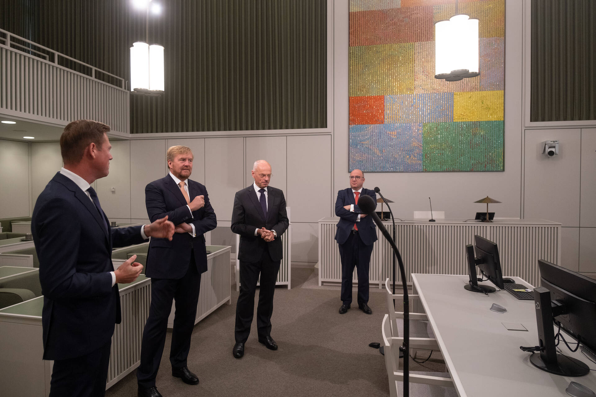 Zijne Majesteit de Koning heeft donderdagochtend 30 september een werkbezoek gebracht aan de Eerste Kamer in Den Haag. De Eerste Kamer is in verband met de renovatie van het Binnenhof eind augustus verhuisd naar een tijdelijke locatie in de Haagse binnenstad.