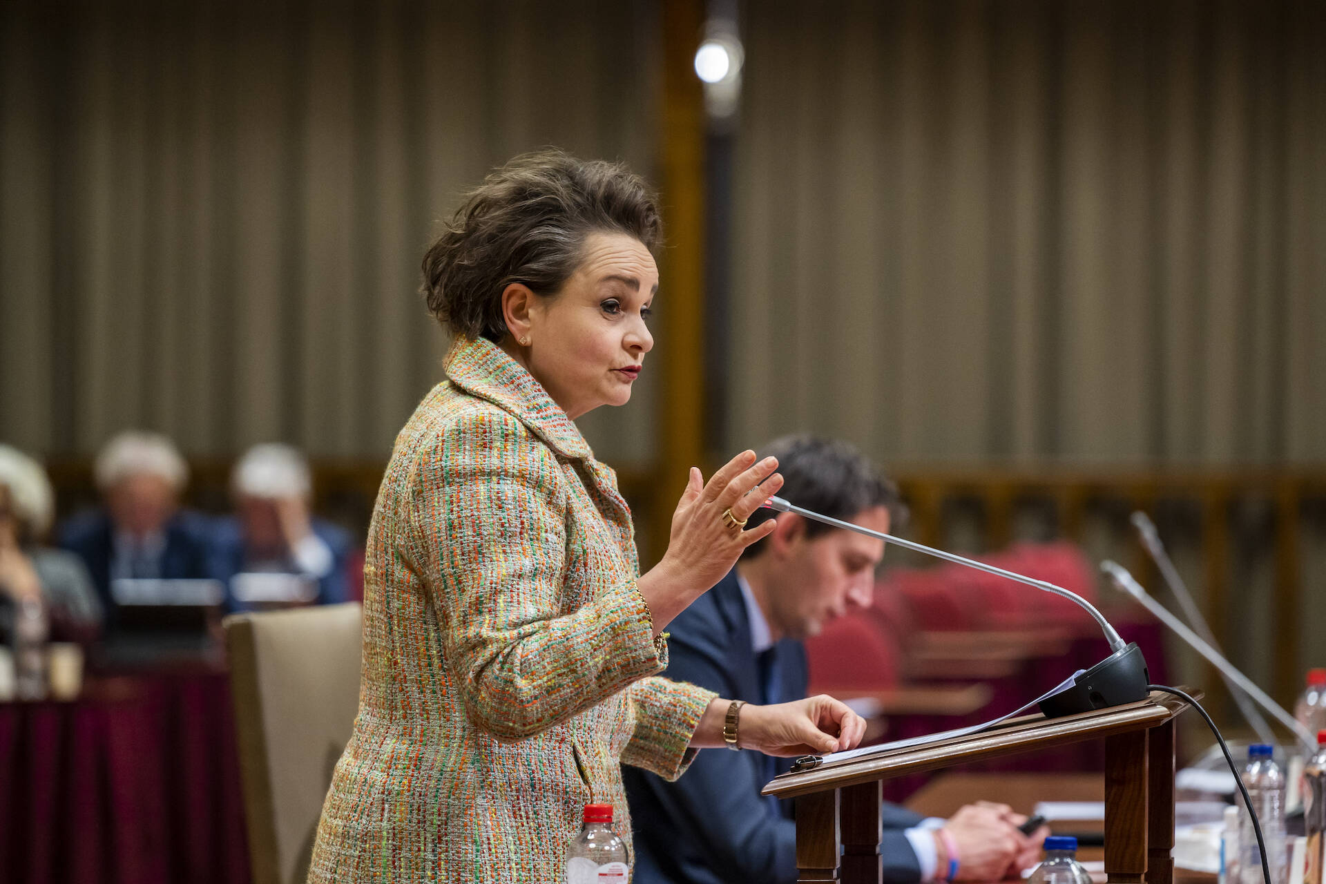 Staatssecretaris Van Huffelen zette uiteen hoe de hersteloperatie voor de toeslagenaffaire verloopt. Er hebben zich tot nu toe 48.000 mensen gemeld. Van 77% van die mensen is inmiddels met een eerste toets beoordeeld of ze in aanmerking komen voor de compensatie van 30.000 euro. Ruim 22.000 mensen hadden recht, 18.000 hebben inmiddels het bedrag ontvangen. De helft van hen heeft recht op meer, dat onderzoek loopt nog. Verder zijn hun schulden gepauzeerd en worden schulden afgelost. Er is ook een groot deel van de 48.000 verzoeken dat niet in aanmerking komt, in ieder geval niet voor een financiële compensatie. Om dat het proces moet versnellen vindt nu een herijkingsprocedure plaats. Alles wat beter kan worden gedaan, wordt vastgelegd in een plan dat in december naar het parlement wordt gestuurd. Van Huffelen zei dat het kabinet bij de afhandeling steeds wordt geconfronteerd met het dilemma van zorgvuldigheid versus snelheid.