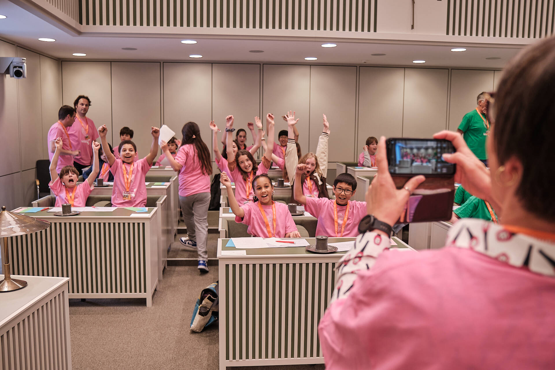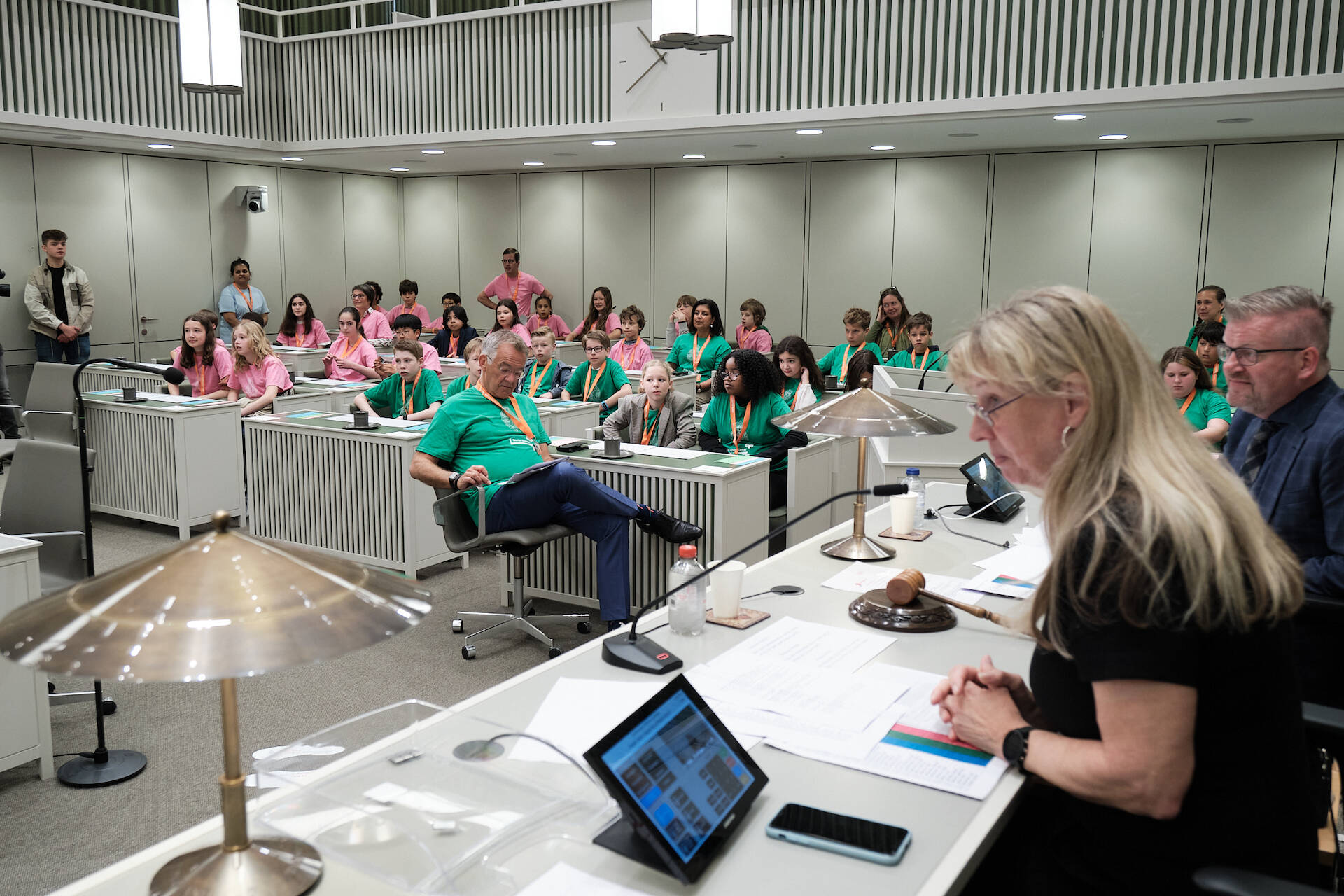 Ieder jaar worden basisscholen uitgenodigd mee te doen aan de Derde Kamer. Met lespakketten krijgen de leerlingen uitleg over de werking van het parlement. De scholen kunnen stellingen voor een debat inzenden, waaruit jaarlijks enkele scholen worden geselecteerd om naar de Eerste Kamer te komen voor een finaledebat. Dit jaar zijn groep 7/8 van basisschool Kronenburgh uit Rijswijk en groep 8 van basisschool De Triangel uit Capelle aan den IJssel uitgenodigd in de plenaire vergaderzaal van de Eerste Kamer. Hun inzendingen in de voorronden behoorden tot de slimste en creatiefste.