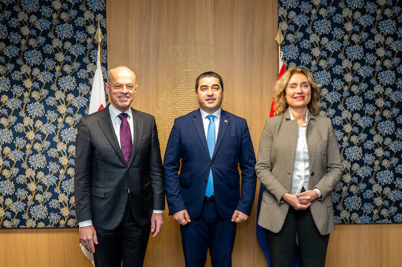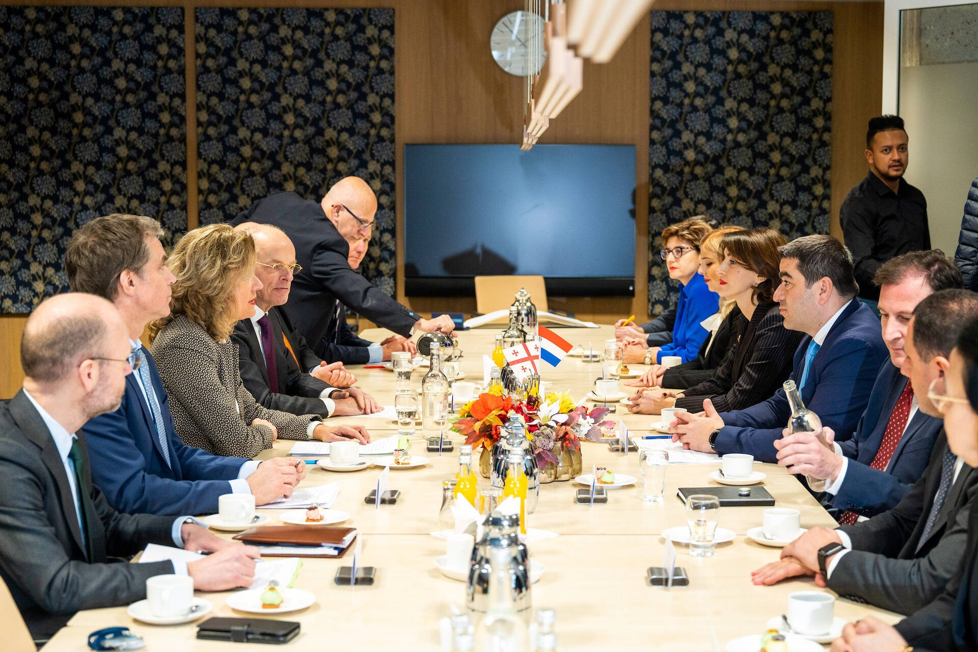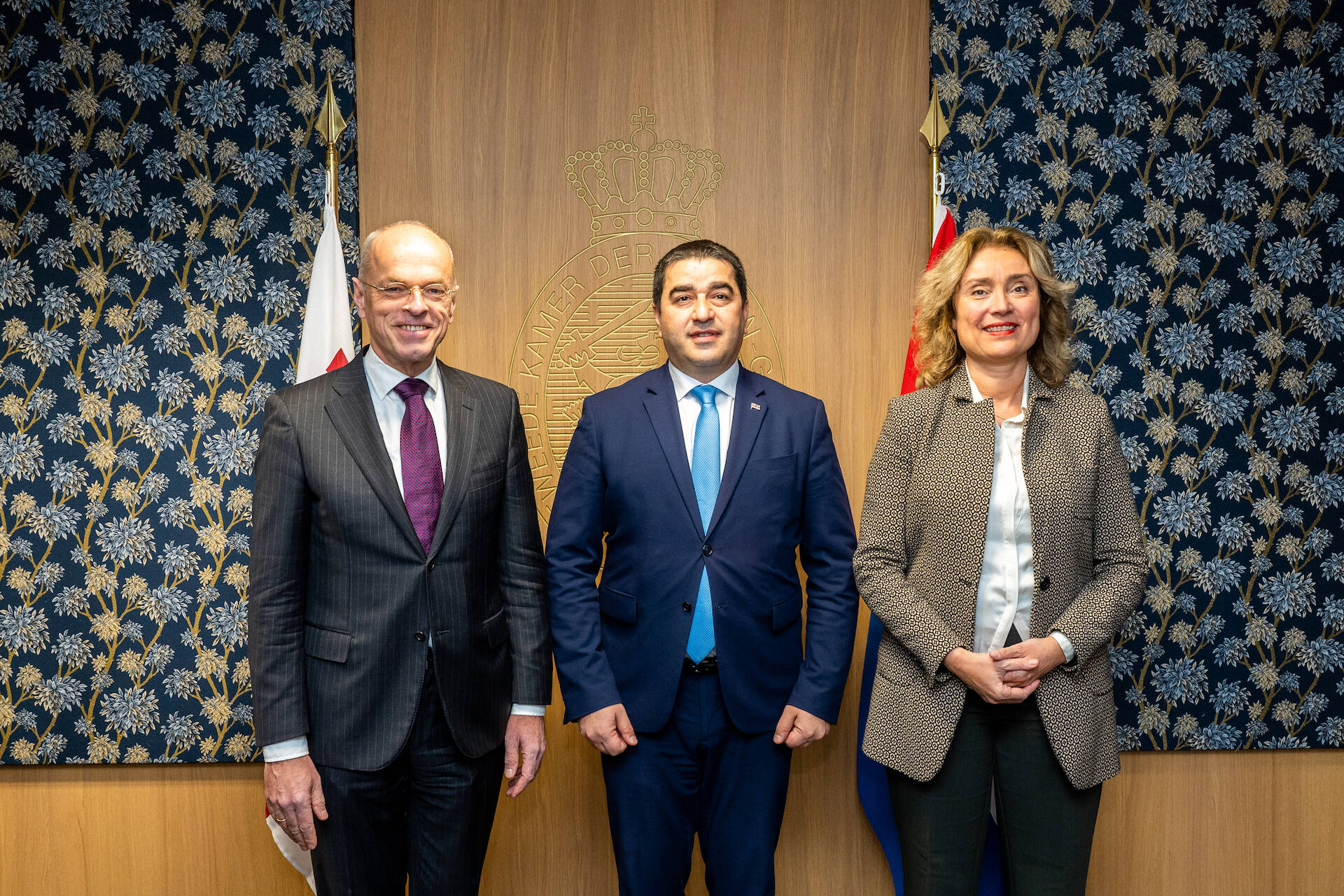 De Staten-Generaal ontvingen op maandag 5 december de Georgische parlementsvoorzitter Shalva Papuashvili. Tweede Kamervoorzitter Vera Bergkamp en Eerste Kamervoorzitter Jan Anthonie Bruijn heetten hem welkom in het Tweede Kamergebouw. Papuashvili ging ook in gesprek met een vertegenwoordiging van Kamerleden van beide Kamers.