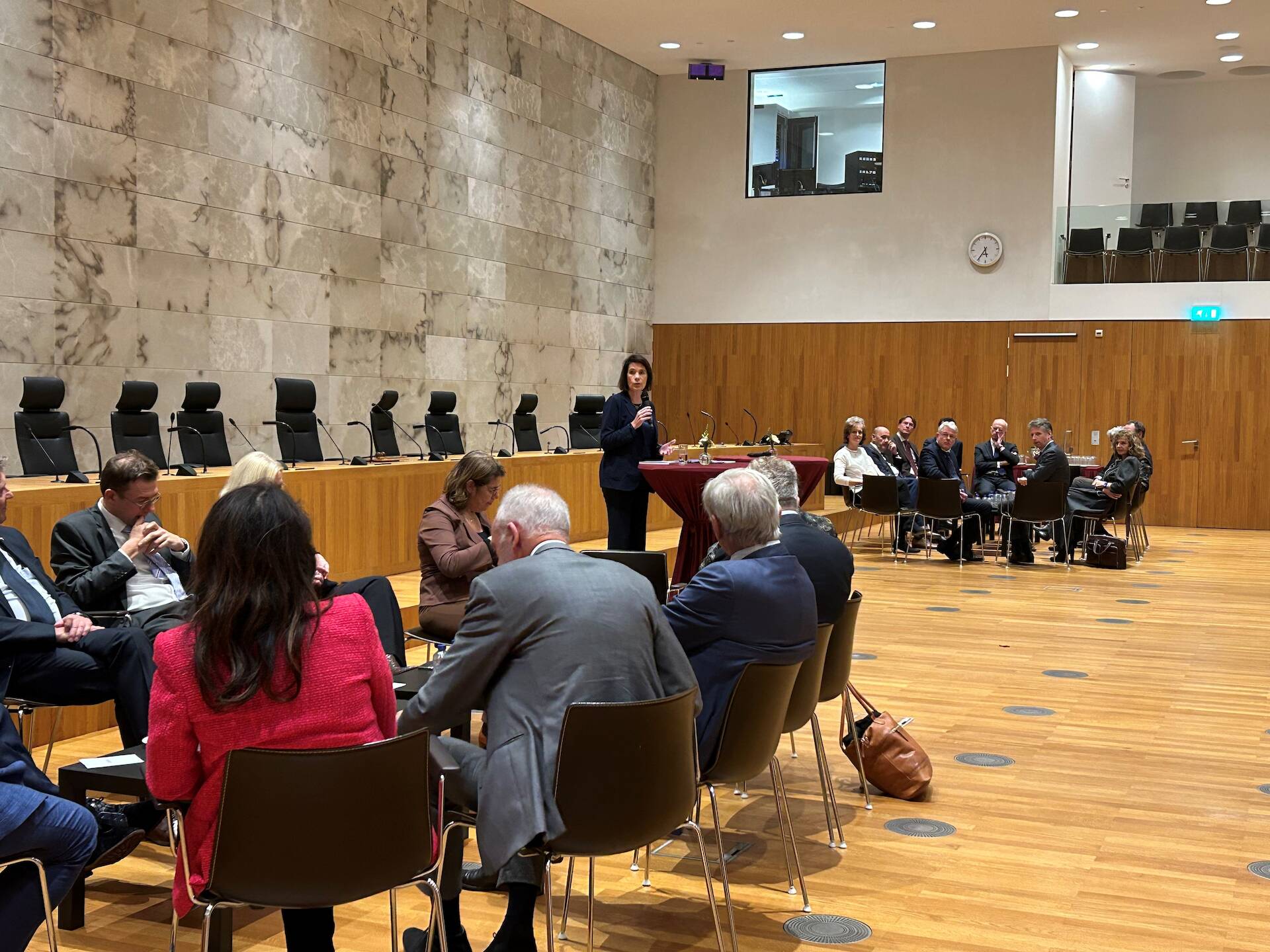 Leden van de Eerste Kamer brachten op dinsdag 7 november 2023 een kennismakingsbezoek aan de Hoge Raad. De Kamerleden werden daar ontvangen door onder meer de president van de Hoge Raad, Dineke de Groot, en de procureur-generaal bij de Hoge Raad, Edwin Bleichrodt.