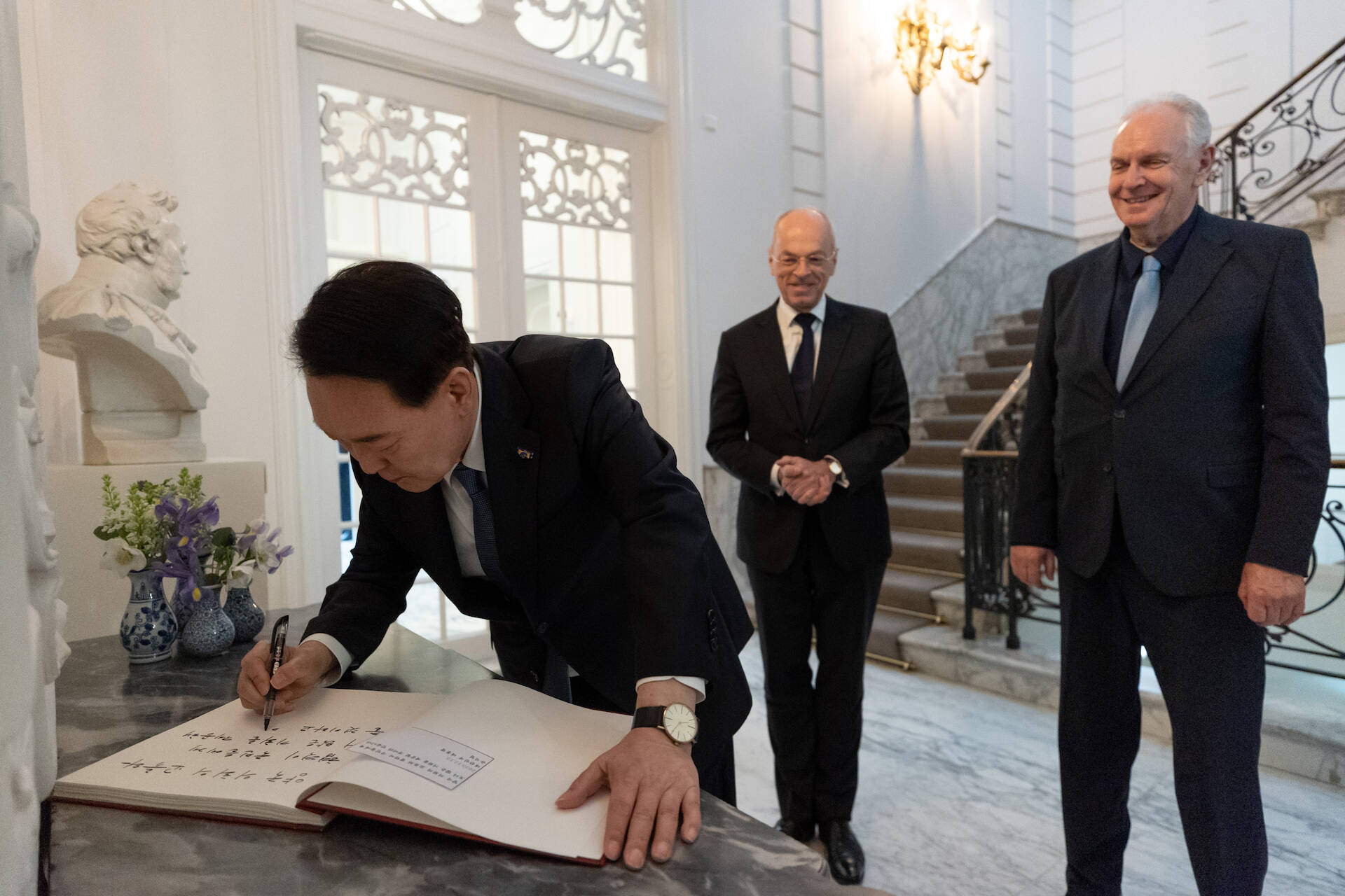 De Eerste en Tweede Kamer ontvingen woensdag 13 december president Yoon van de Republiek Korea. Yoon Suk Yeol is in Nederland voor een tweedaags staatsbezoek. Eerste Kamervoorzitter Jan Anthonie Bruijn en plaatsvervangend Voorzitter van de Tweede Kamer Raymond de Roon ontvingen de president in de Eerste Kamer in Den Haag.