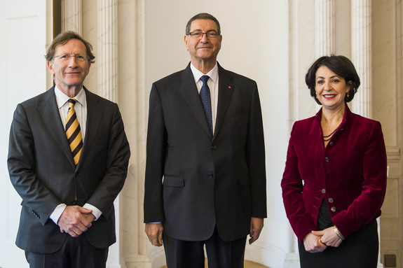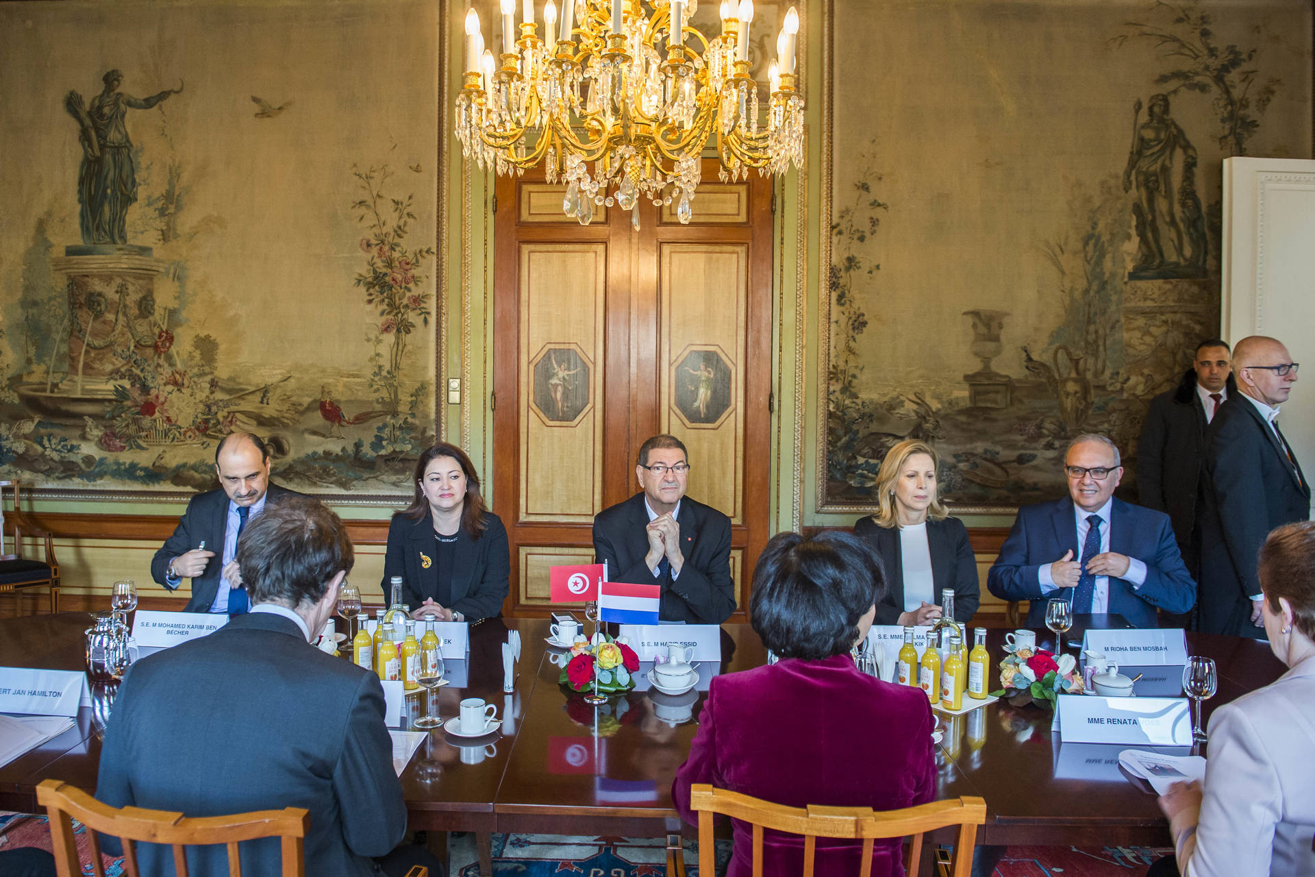 De Voorzitter van de Tweede Kamer, Khadija Arib, en de Ondervoorzitter van de Eerste Kamer, Joris Backer, hebben donderdag in de Stadhouderskamer van de Tweede Kamer de minister-president van Tunesië, Habib Essid, ontvangen. Daarbij waren ook Sonia M'Barek, minister van Cultuur, en Salma Elloumi Rekik, minister van Toerisme en Nijverheid van Tunesië, aanwezig.