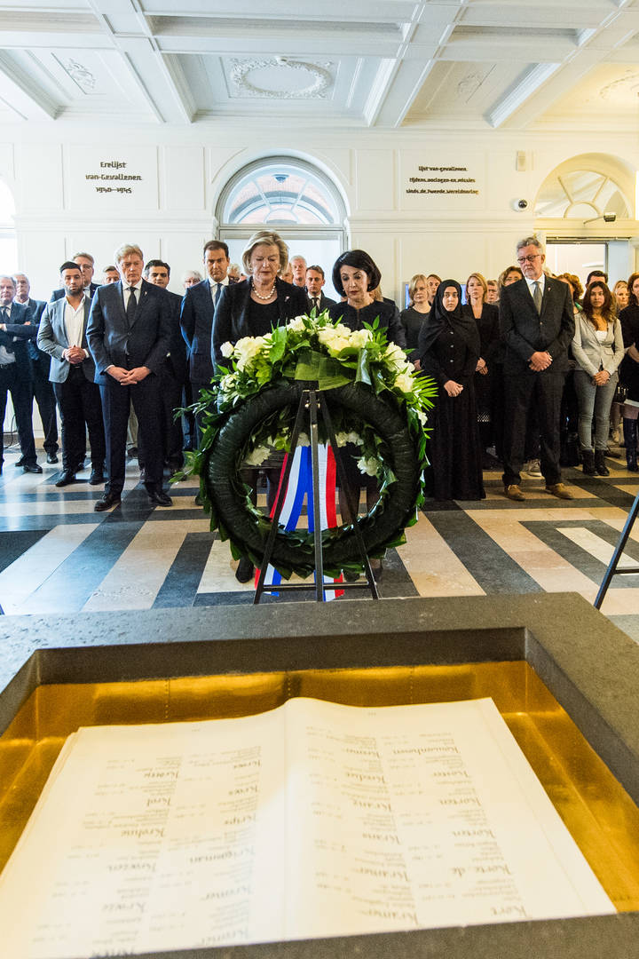 Vervolgens legden de Voorzitters van de Eerste en Tweede Kamer, Ankie Broekers-Knol en Khadija Arib, een krans namens de Staten-Generaal, gevolgd door Vice-premier Lodewijk Asscher en Staatssecretaris Martin Van Rijn van Volksgezondheid, Welzijn en Sport namens de Ministerraad van het Koninkrijk, en de rector en een leerling van de Johan de Witscholengroep namens hun school.