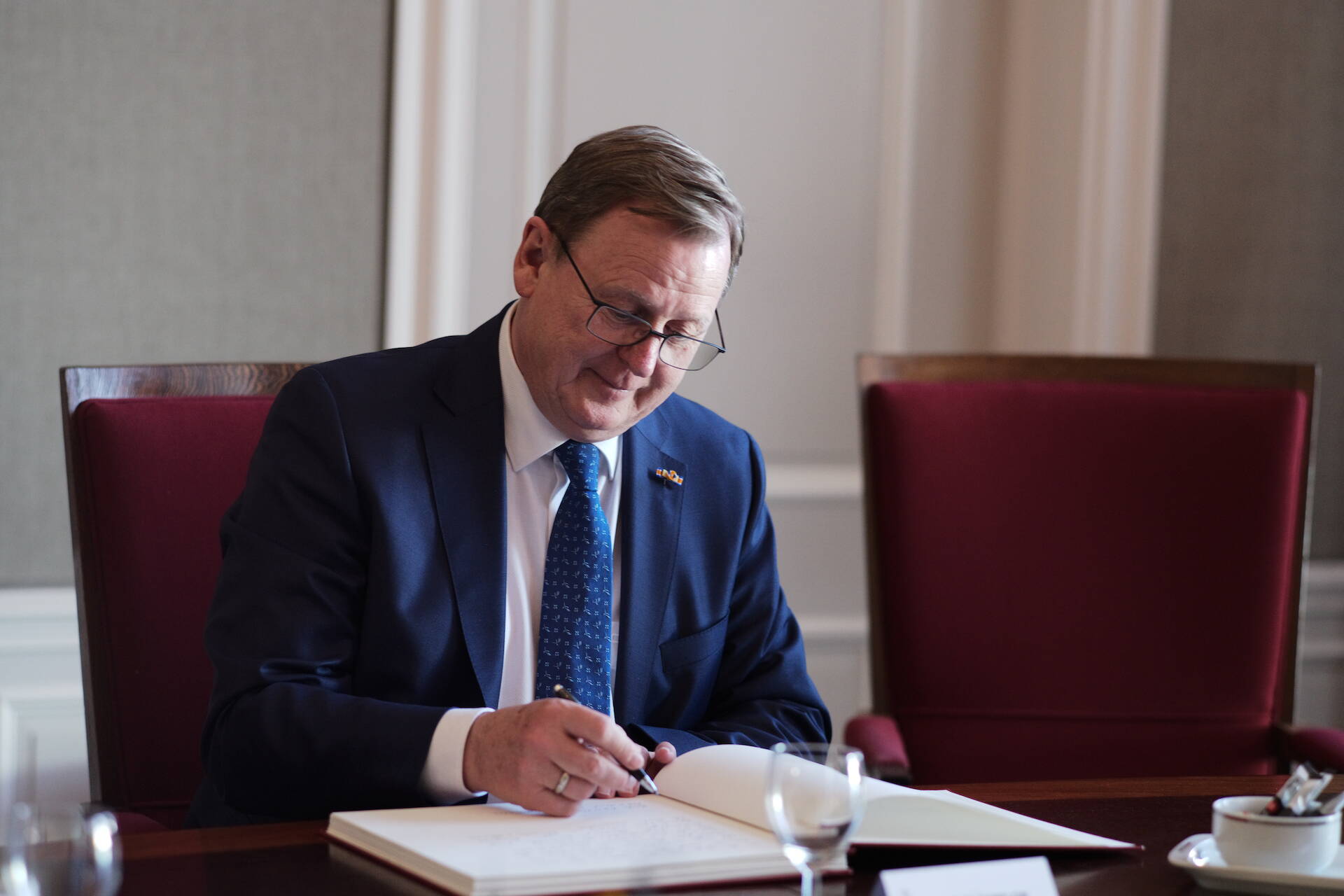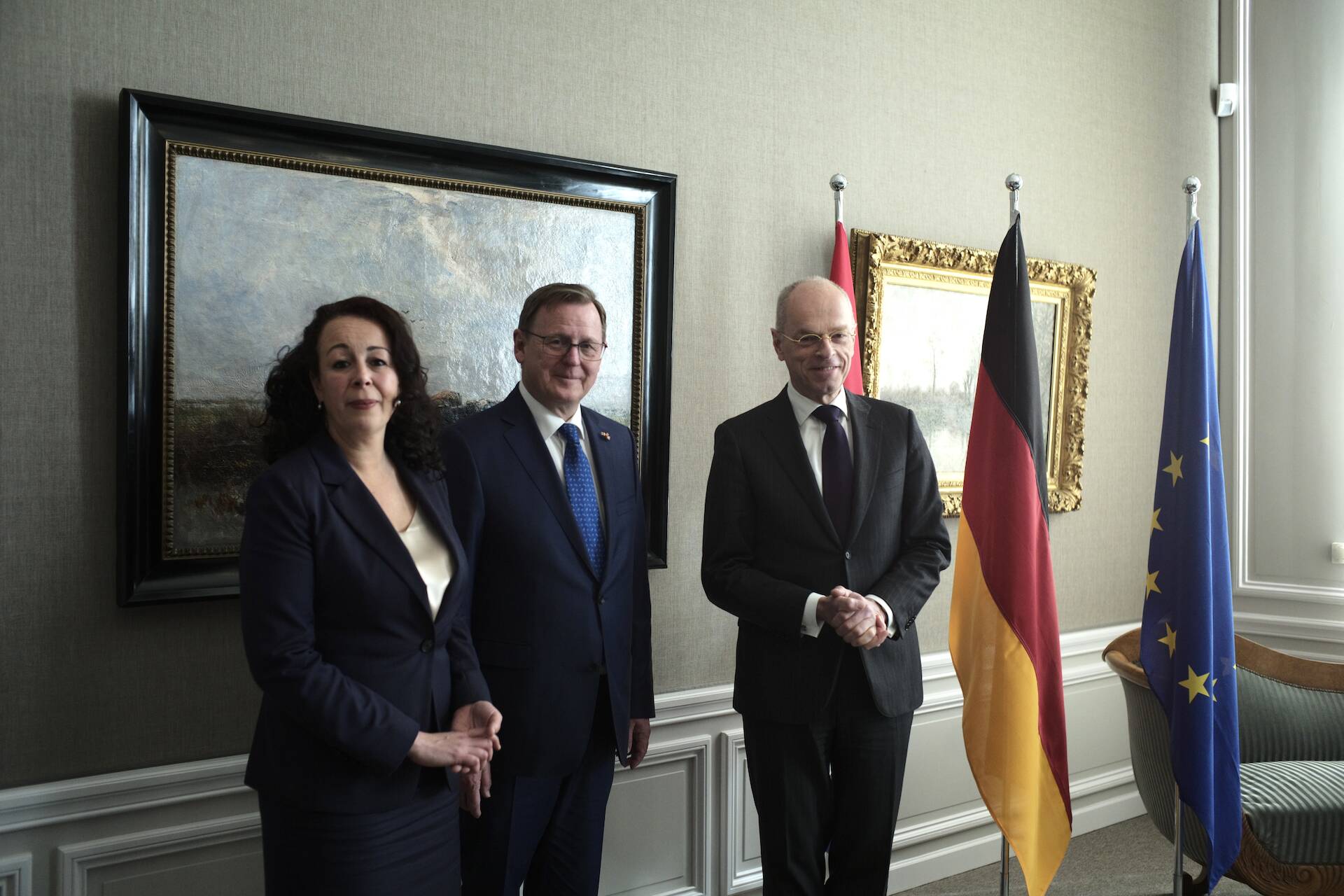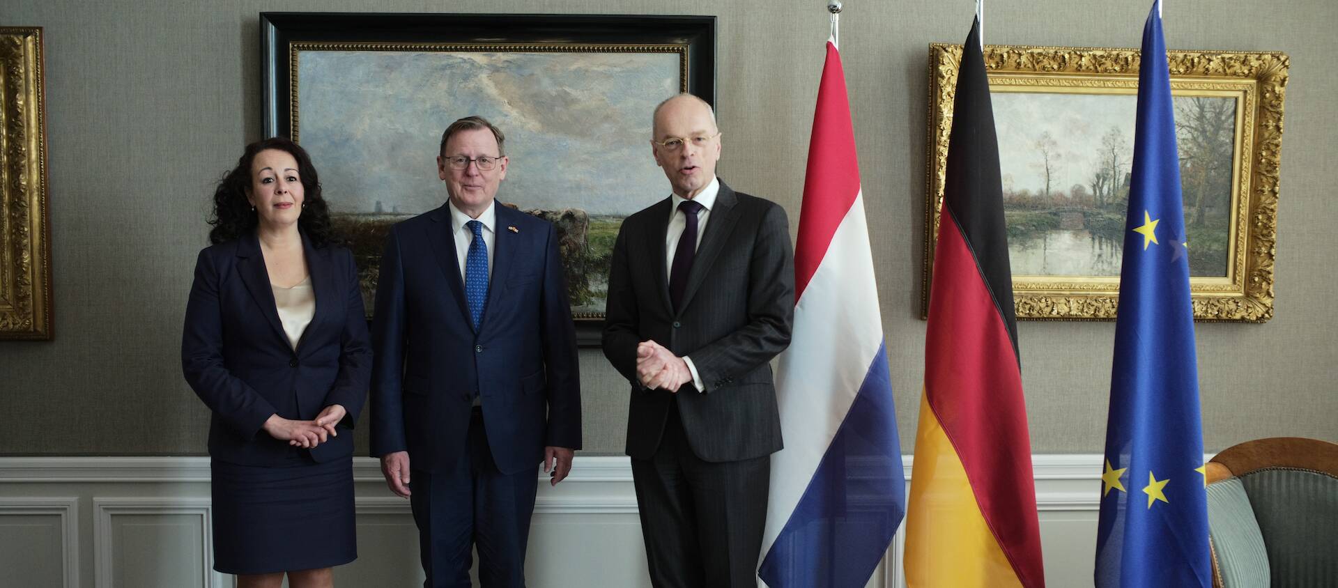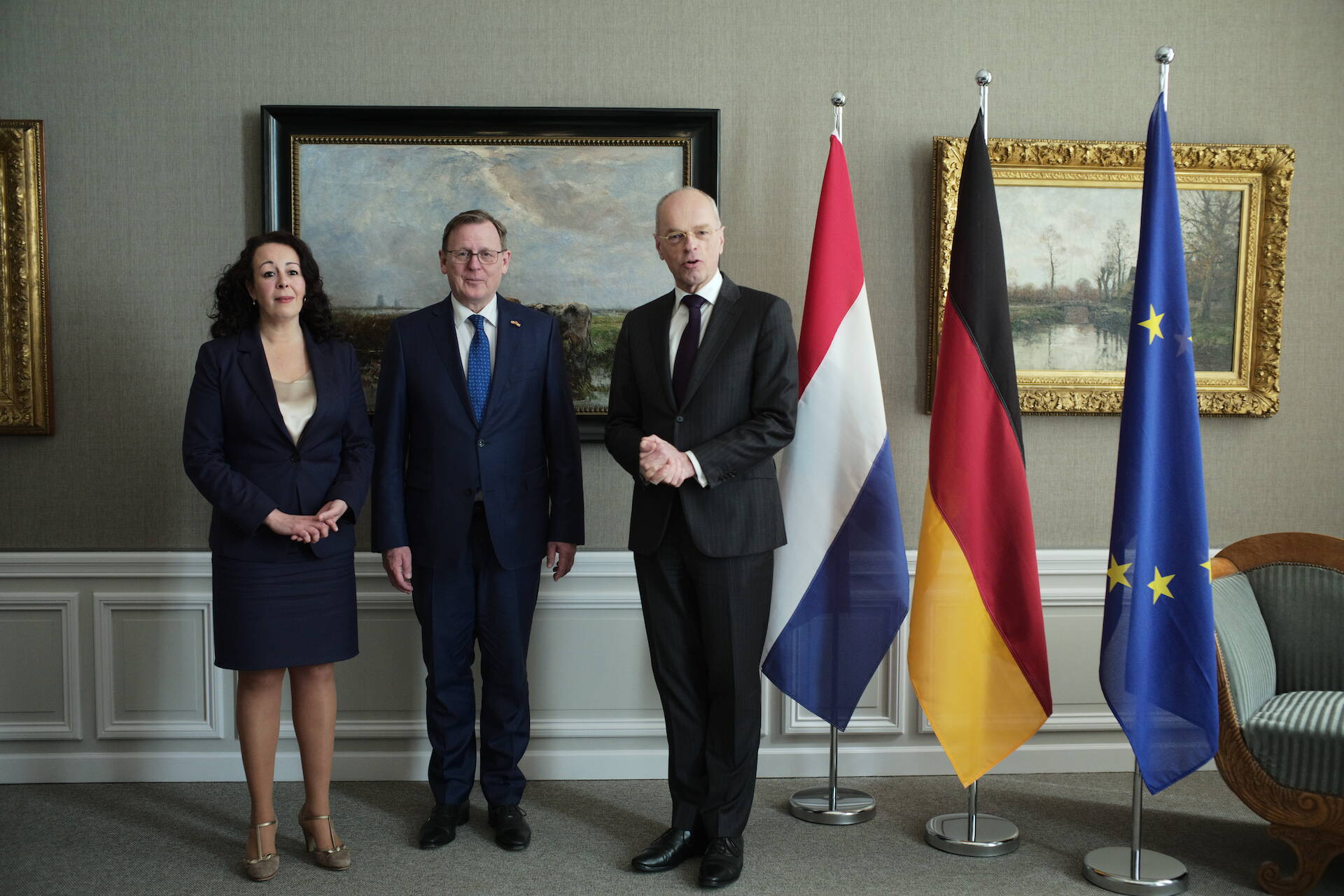 Eerste Kamervoorzitter Jan Anthonie Bruijn ontving samen met Ondervoorzitter van de Tweede Kamer Salima Belhaj de heer Bodo Ramelow. Ramelow is naast Voorzitter van de Bundesrat ook minister-president van deelstaat Thüringen. Hij werd ontvangen op de tijdelijke huisvesting van de Eerste Kamer aan het Lange Voorhout in Den Haag,