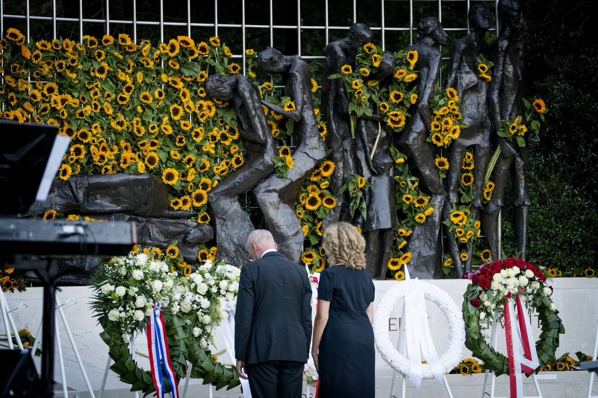 Eerste Kamervoorzitter Jan Anthonie Bruijn en Tweede Kamervoorzitter Vera Bergkamp hebben maandag een krans gelegd bij de Indische Plaquette in het tijdelijke gebouw van de Tweede Kamer. In een korte besloten bijeenkomst werden de slachtoffers van de Tweede Wereldoorlog in voormalig Nederlands-Indië herdacht.
