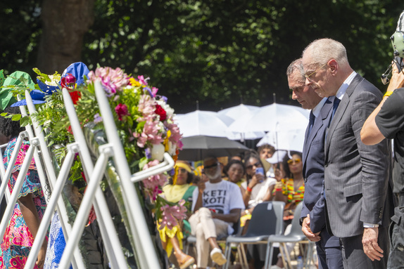 Het Nederlands slavernijverleden is dinsdag 1 juli herdacht bij het Nederlandse Slavernijmonument in het Oosterpark in Amsterdam. Eerste Kamervoorzitter Jan Anthonie Bruijn en Tweede Kamer Ondervoorzitter Tom van der Lee legden namens de Staten-Generaal een krans bij het monument van de Surinaamse kunstenaar Erwin de Vries.