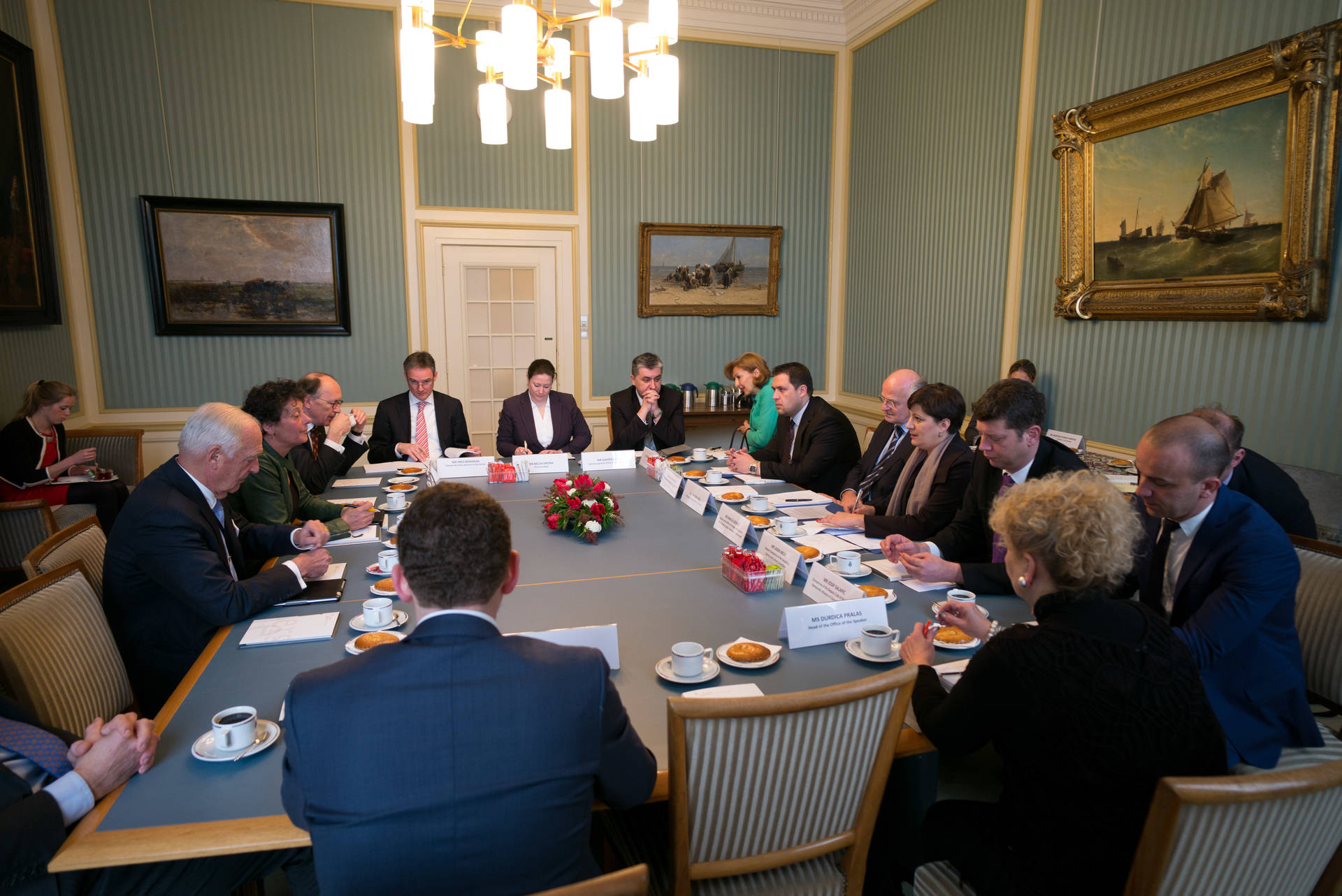 In haar welkomsttoespraak onderstreepte Voorzitter Broekers-Knol de intensieve dialoog die in de aanloop naar het lidmaatschap van Kroatië van de Europese Unie ook op parlementaire niveau tussen Kroatië en Nederland heeft plaatsgevonden. “Throughout the whole process, the Dutch were critical but have always strived to maintain a strict and fair approach. We have always greatly appreciated your openness and your willingness to take on suggestions. And we are so very pleased that the intensive dialogue has lead us to what we are now: fellow EU members and partners”, aldus Broekers-Knol.