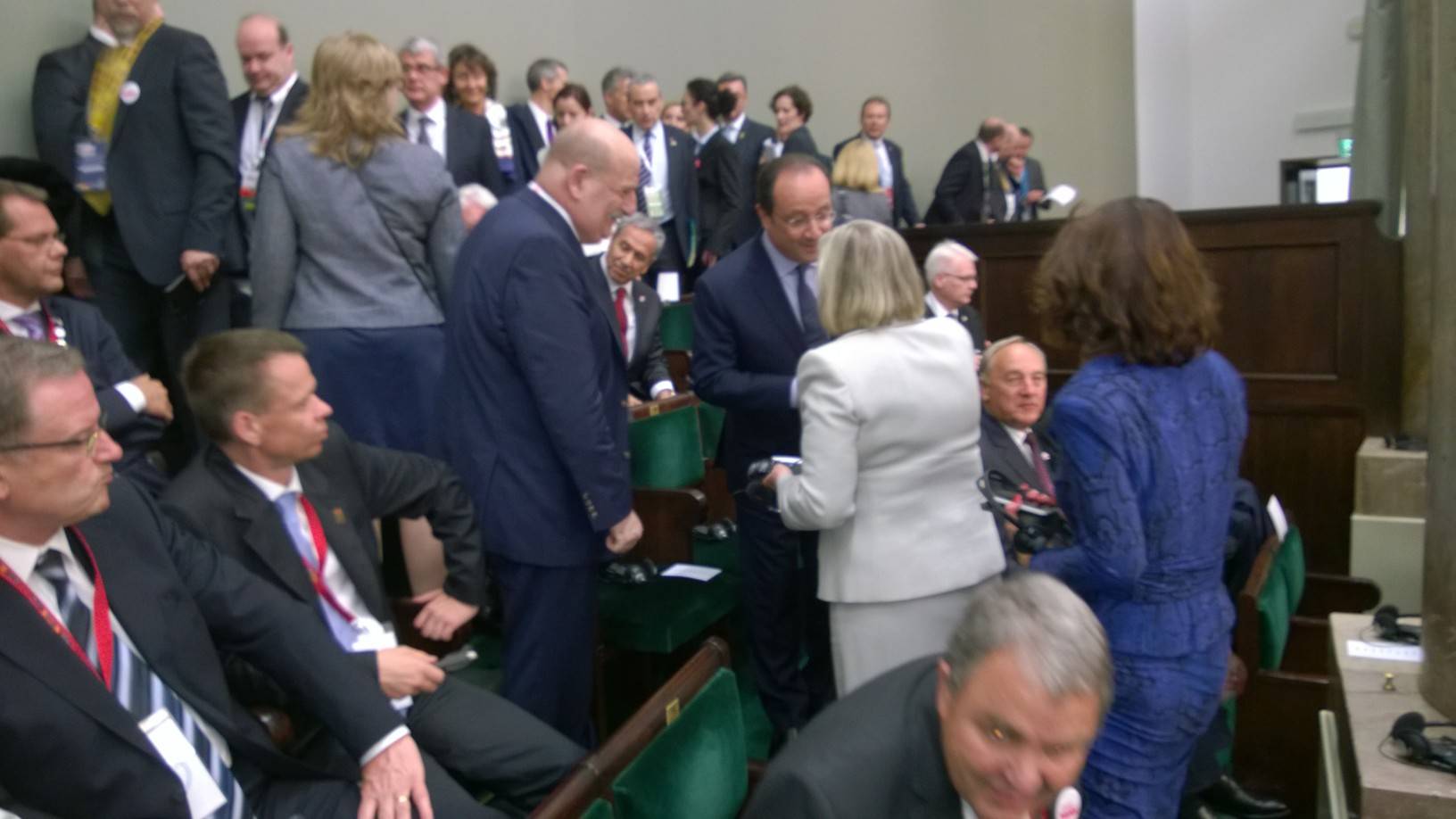 In de middag vond in de grote vergaderzaal van de Sejm een bijzondere zitting van het Poolse Parlement plaats. Daarbij waren ook veel staatshoofden en parlementsvoorzitters als gast aanwezig. President Komorowski gaf daar een uiteenzetting van het economische en sociale situatie Polen en ging in op de veiligheidssituatie in de regio. Hij noemde de enorme economische groei die Polen de laatste jaren gekend heeft. Polen is van de weinige landen in Europa waar de economische en financiële crisis niet tot terugval heeft geleid.