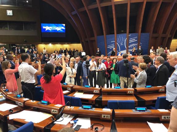 In Straatsburg vergaderden de afgelopen week acht leden van de vaste delegatie in de parlementaire assemblee van de Raad van Europa met hun buitenlandse collega's. Namens de Eerste Kamer betrof het Mart van de Ven(VVD, delegatieleider), Tiny Kox (SP), Ria Oomen-Ruijten (CDA), Reina de Bruijn-Wezeman (VVD), Henk Overbeek (SP), Petra Stienen (D66) en Tineke Strik (GL) en vanuit de Tweede Kamer was Pieter Omtzigt (CDA) aanwezig.