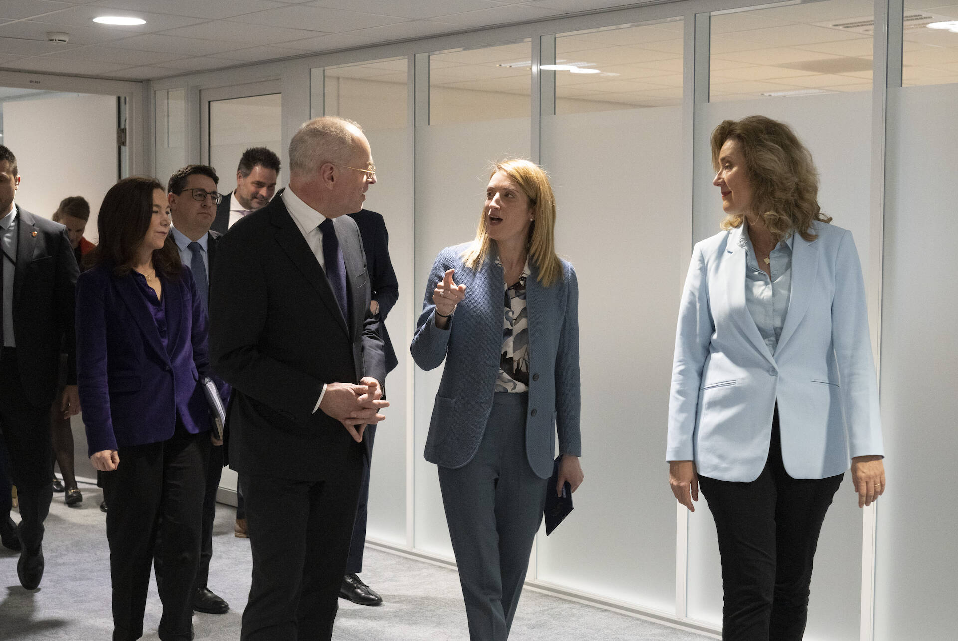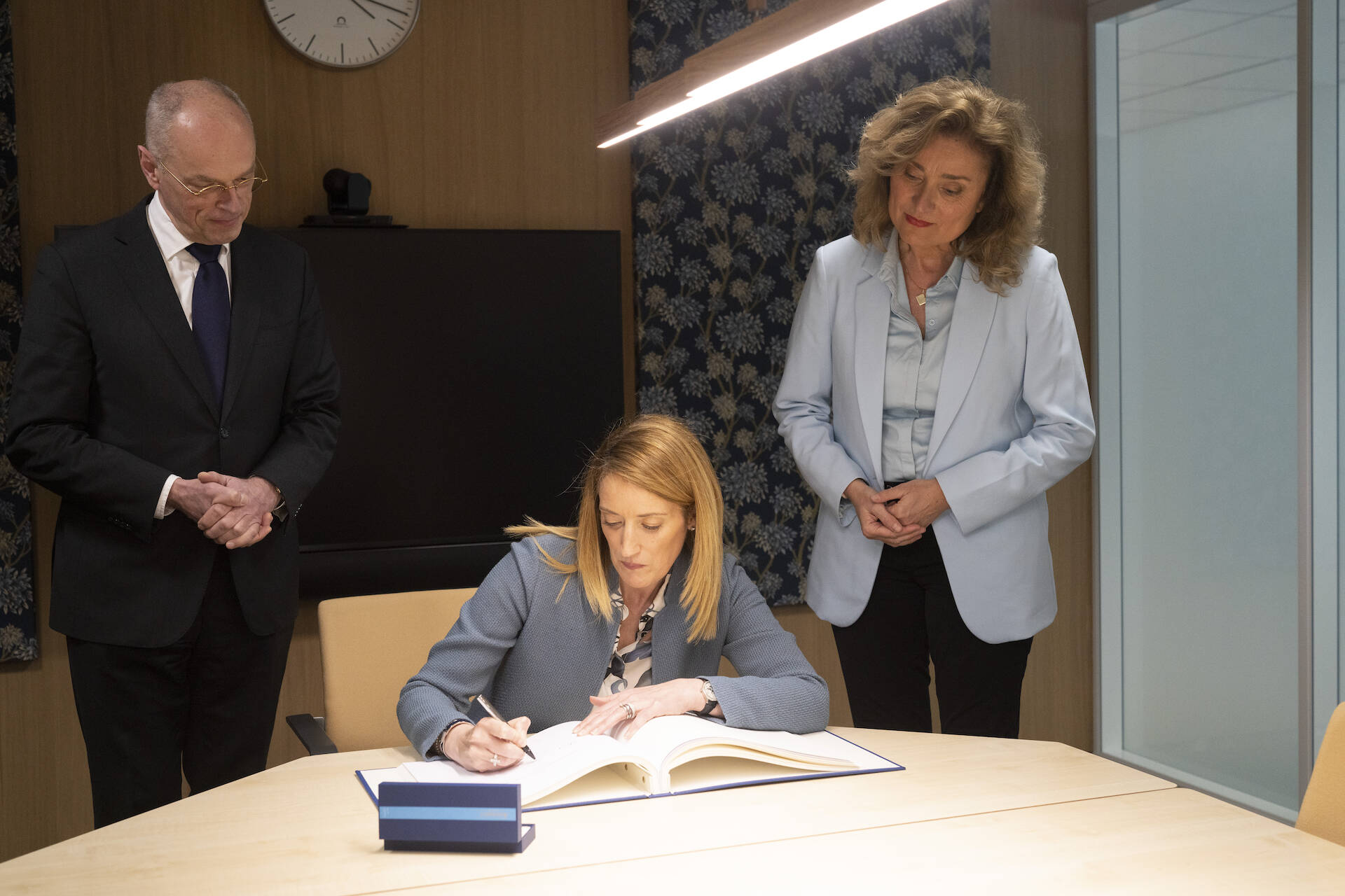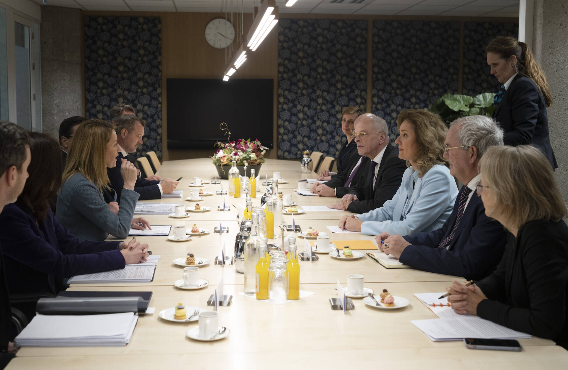 Voorzitter Roberta Metsola van het Europees Parlement heeft op donderdag 30 maart een bezoek gebracht aan het Nederlandse parlement. De Voorzitters van de Tweede en Eerste Kamer, Vera Bergkamp en Jan Anthonie Bruijn, ontvingen haar in de Tweede Kamer.