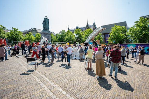 Hoe voelt het om een zetel in te nemen? En wat betekent het om vanuit deze zetel te reflecteren op maatschappelijke ontwikkelingen? Kunstenaar Tirzo Martha werkte van 27 tot en met 30 mei 2023 samen met omstanders aan een kunstwerk bestaande uit stoelen.
